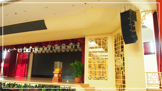 1、音乐及人声扩声:系统中采用了ETC LA系列阵列式线性音箱,分别弧形悬挂在舞台的侧,产生的升压均匀覆盖宴会厅的每一个角落,因此整个宴会的声场分布平均、声压均匀,使得音乐和人声的清晰度、丰满度极佳。